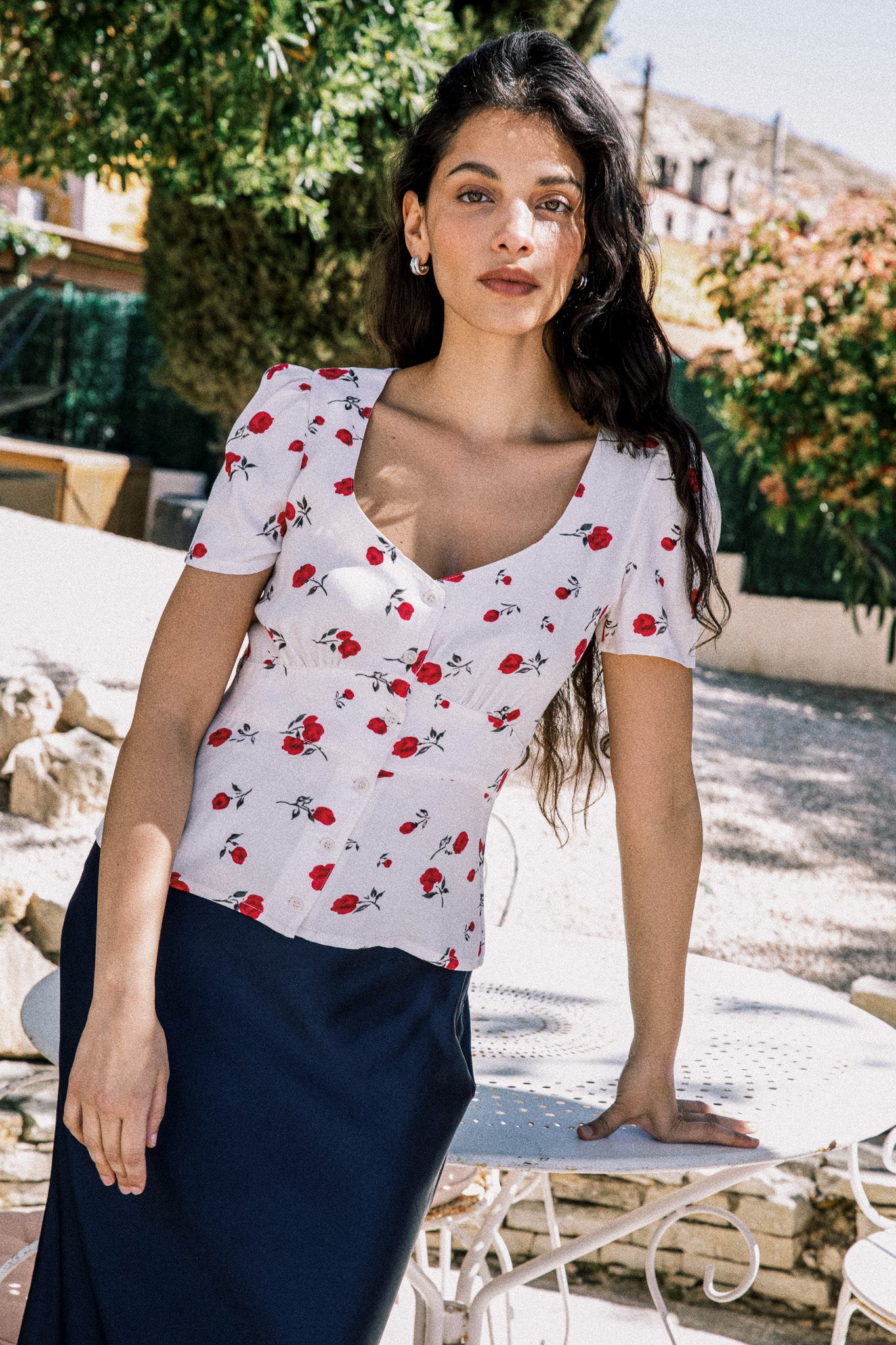 – The model is 168 cm tall and wears a size S. Take your usual size.