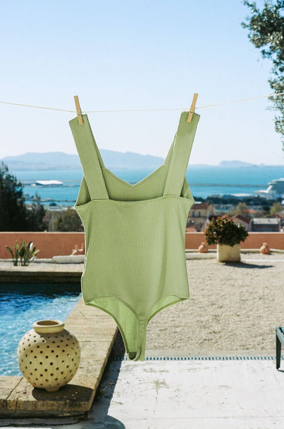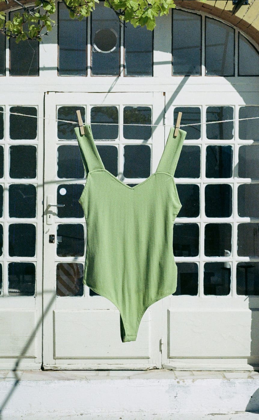 This Bodysuit Alysse green is made from a material of natural origin that is both comfortable and breathable for the skin. It is carefully made in Portugal by women with unique know-how, who share our commitment to sustainability and attention to detail.