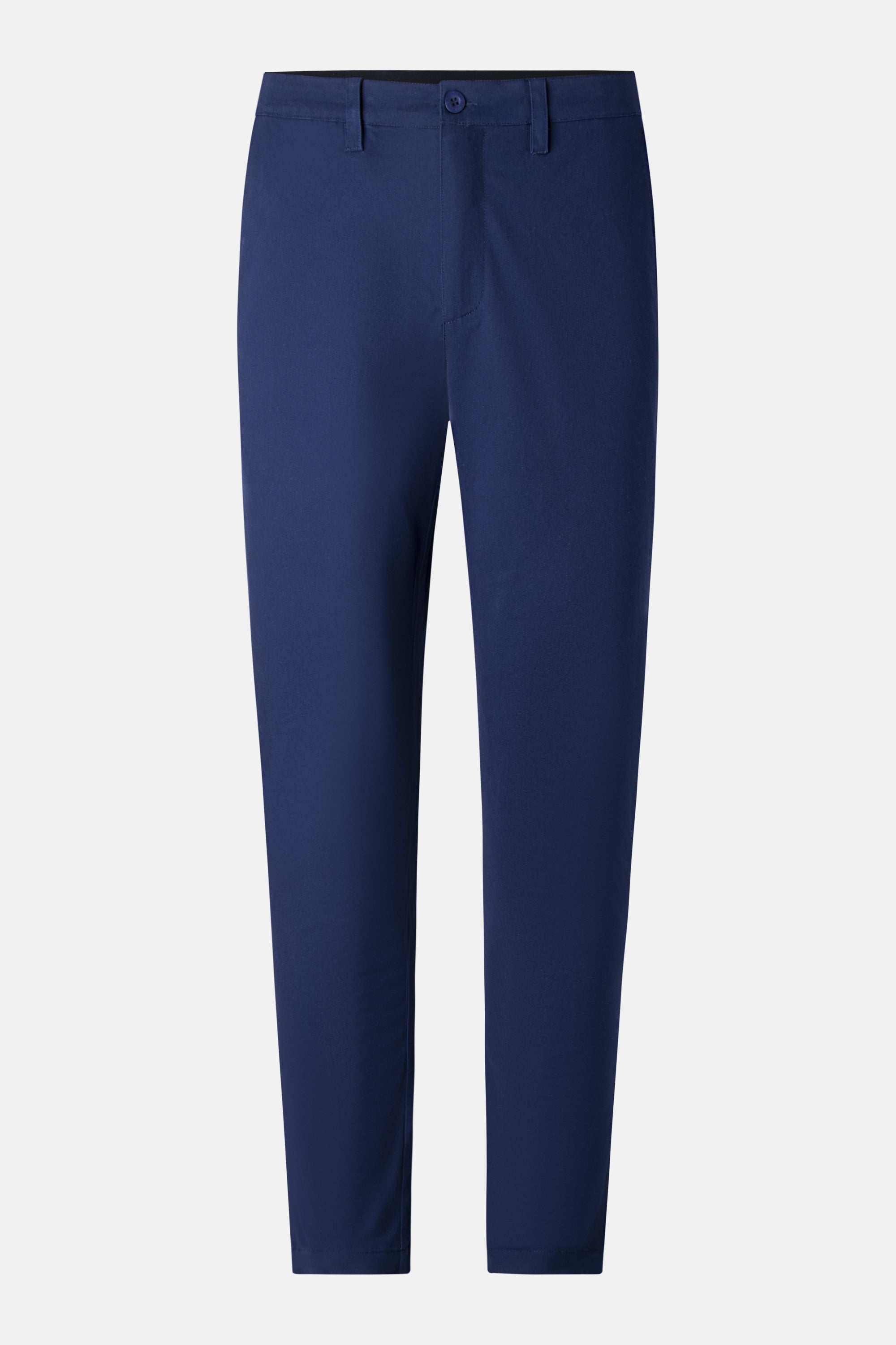 This navy chino trousers is designed for style and comfort. The elasticated waistband ensures a perfect fit and optimum comfort. A convenient hidden zipped pocket offers extra functionality and security. Made from high-quality organic cotton.