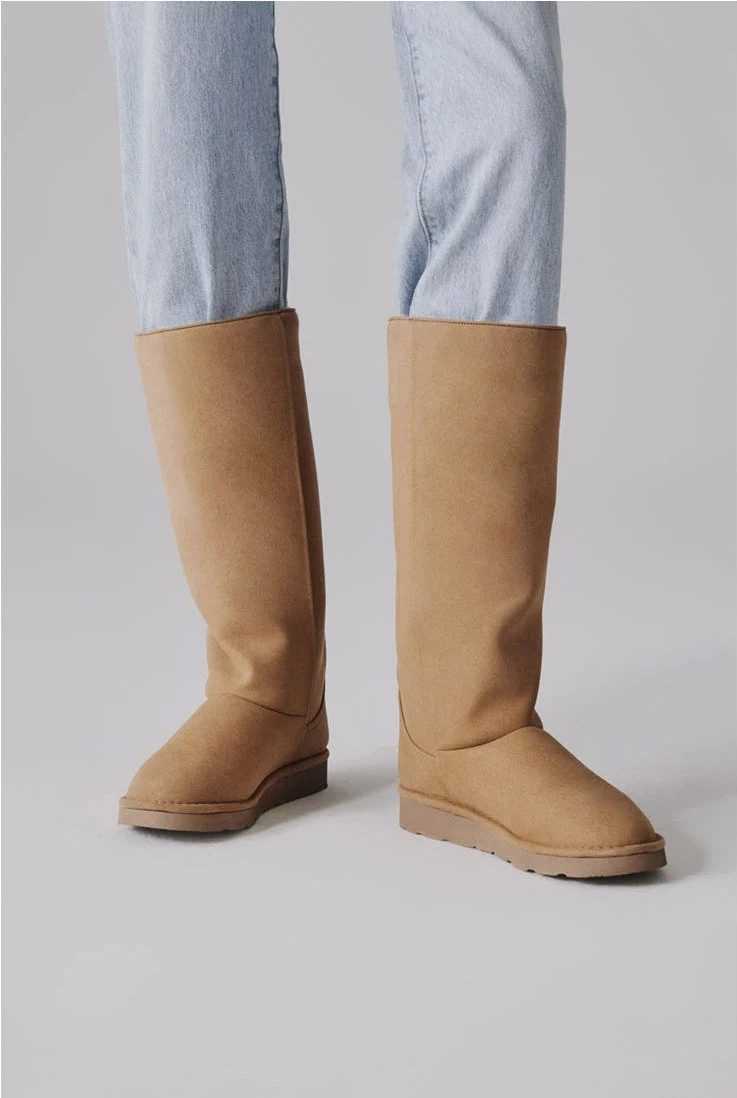 Our Classic Vegan Long Beige Crystal boots model was meticulously crafted to meet your every need. Our vegan and non-toxic ingredients keep your feet cozy and comfortable all day long. Our premium non-animal fur has a charming elegance.