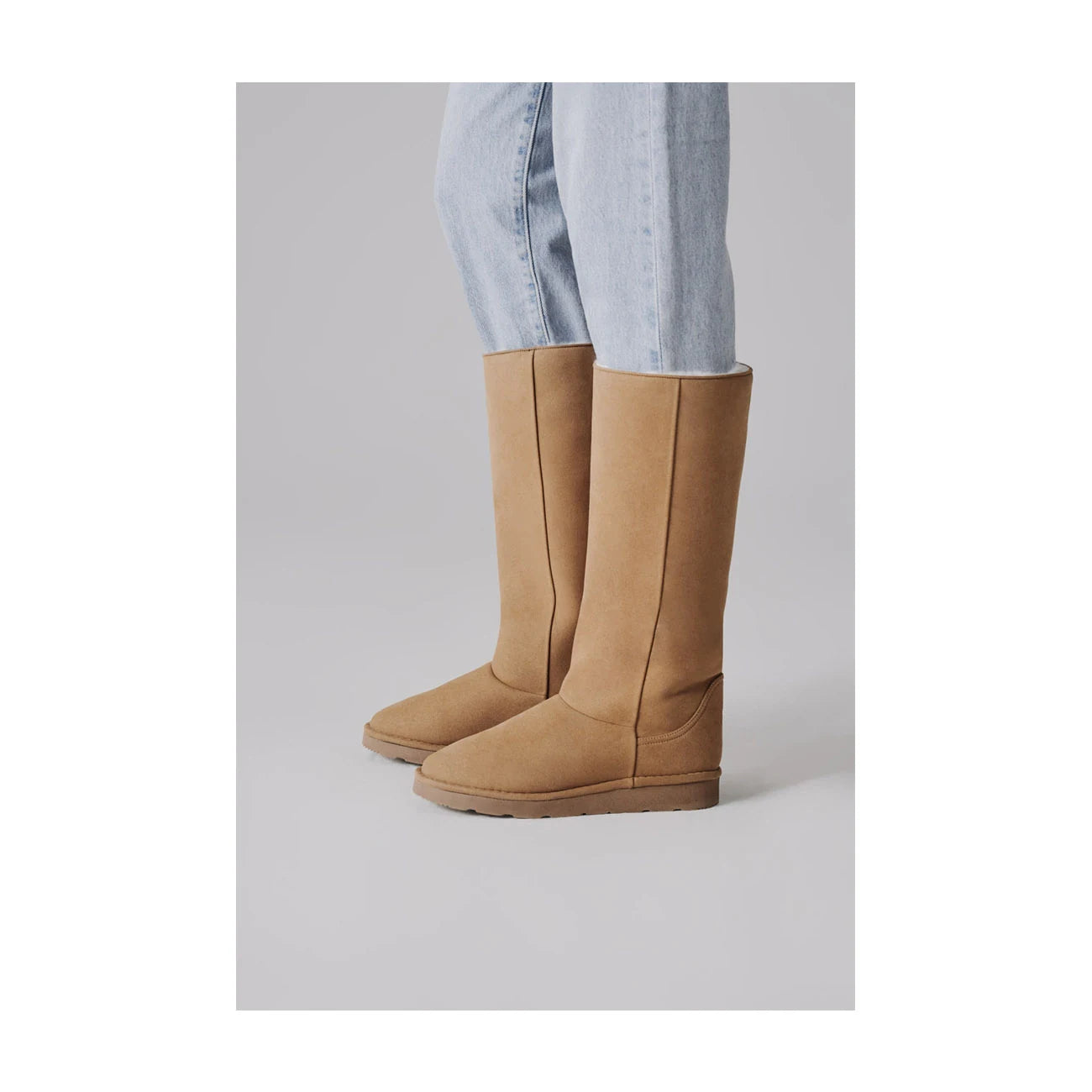 Our Classic Vegan Long Beige boots model was meticulously crafted to meet your every need. Our vegan and non-toxic ingredients keep your feet cozy and comfortable all day long. Our premium non-animal fur has a charming elegance.