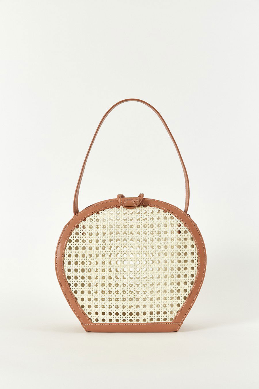 BOUSIINNE Coral Chaîse Ballon Handbag made of cow leather and natural wicker.
