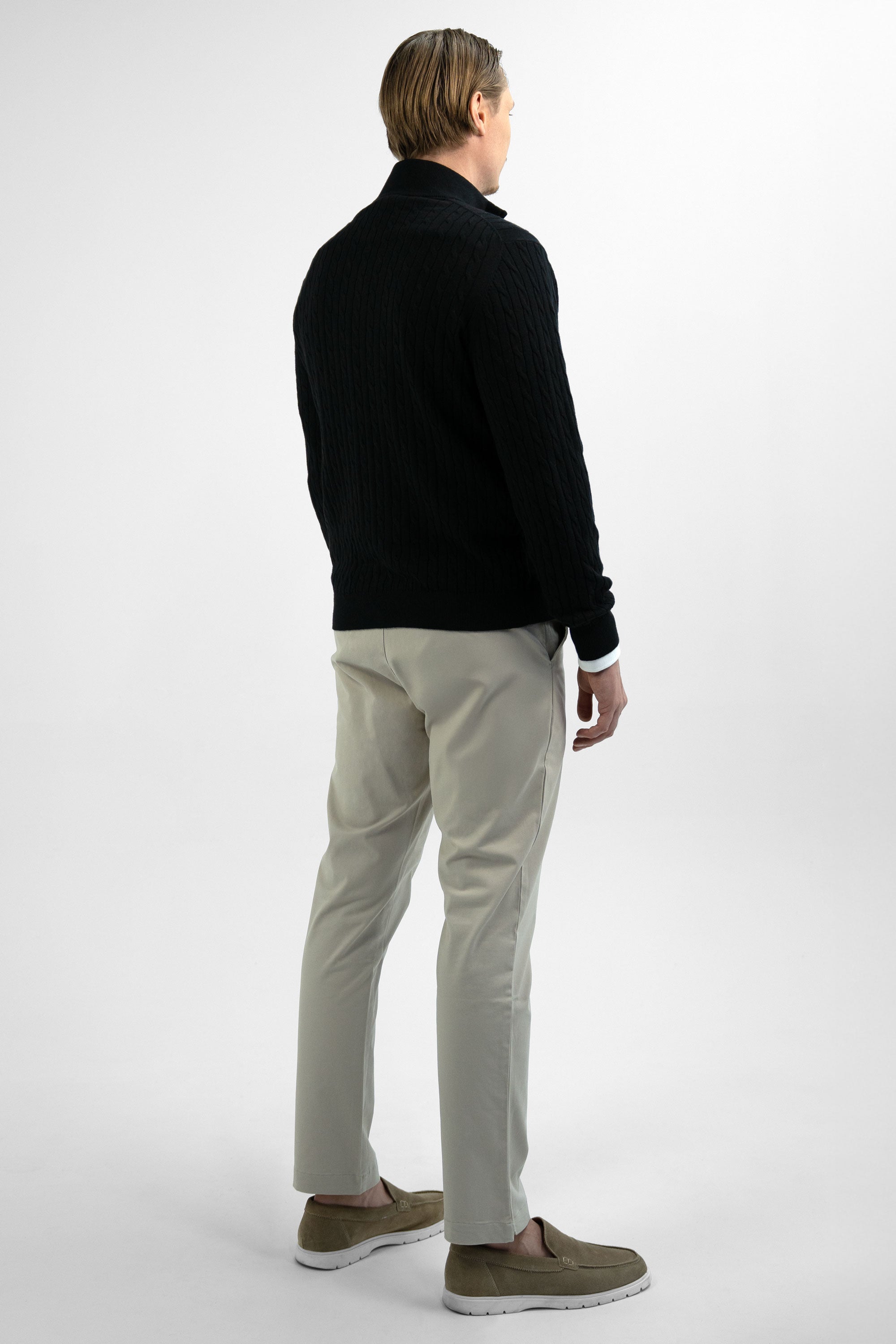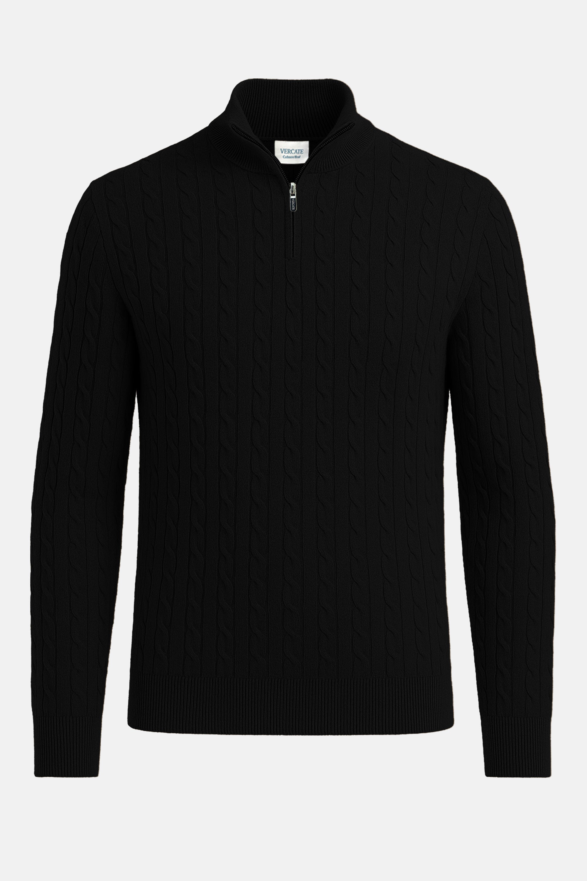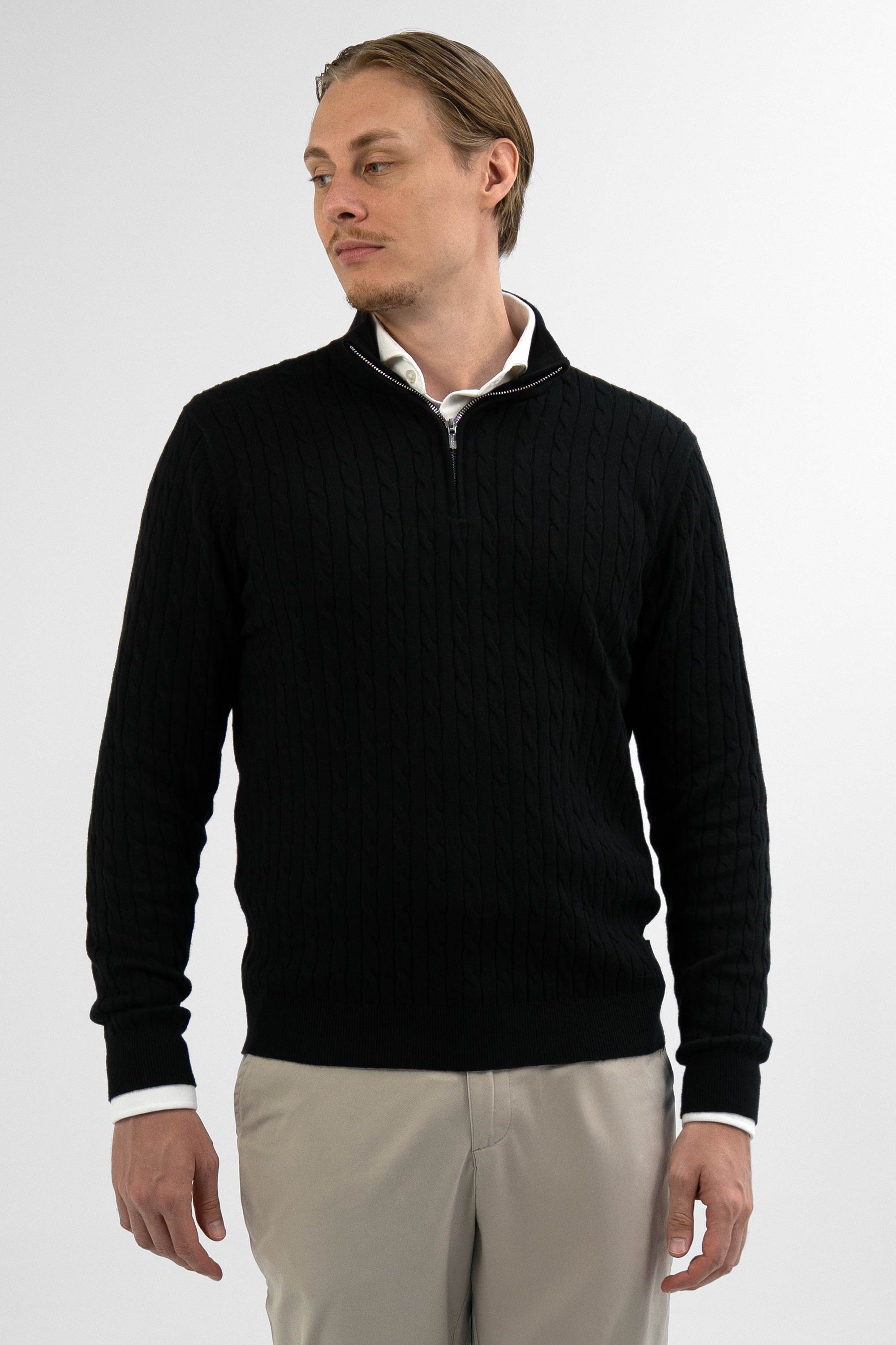 This black half-zip sweater is handcrafted from a premium cashmere blend and designed with a timeless cable knit. The fine detailing and soft texture give the sweater a luxurious look and exceptional comfort. Thanks to the modern half-zip, this classic design gains a contemporary touch, making it a stylish piece that will remain beautiful for years to come.