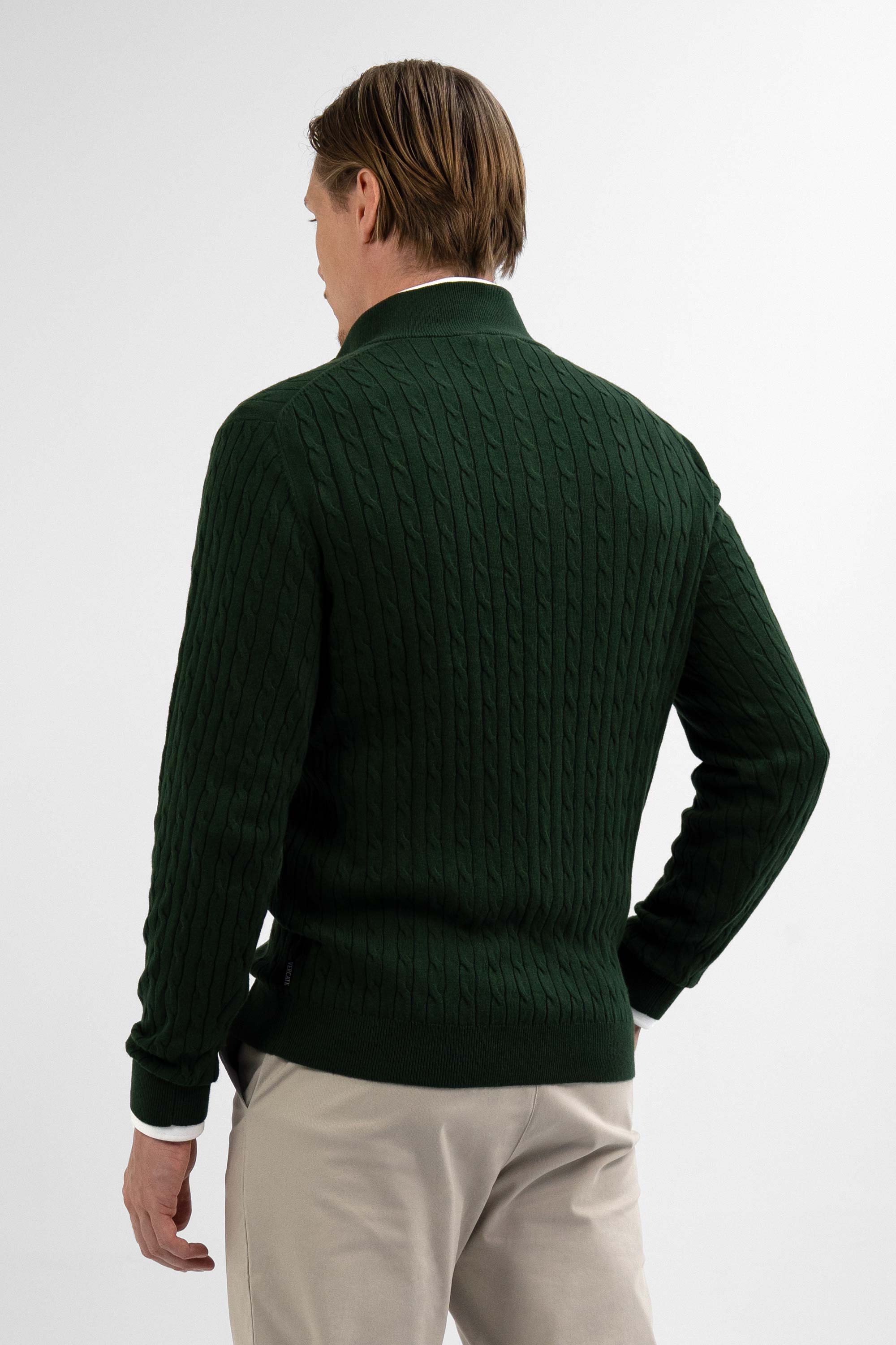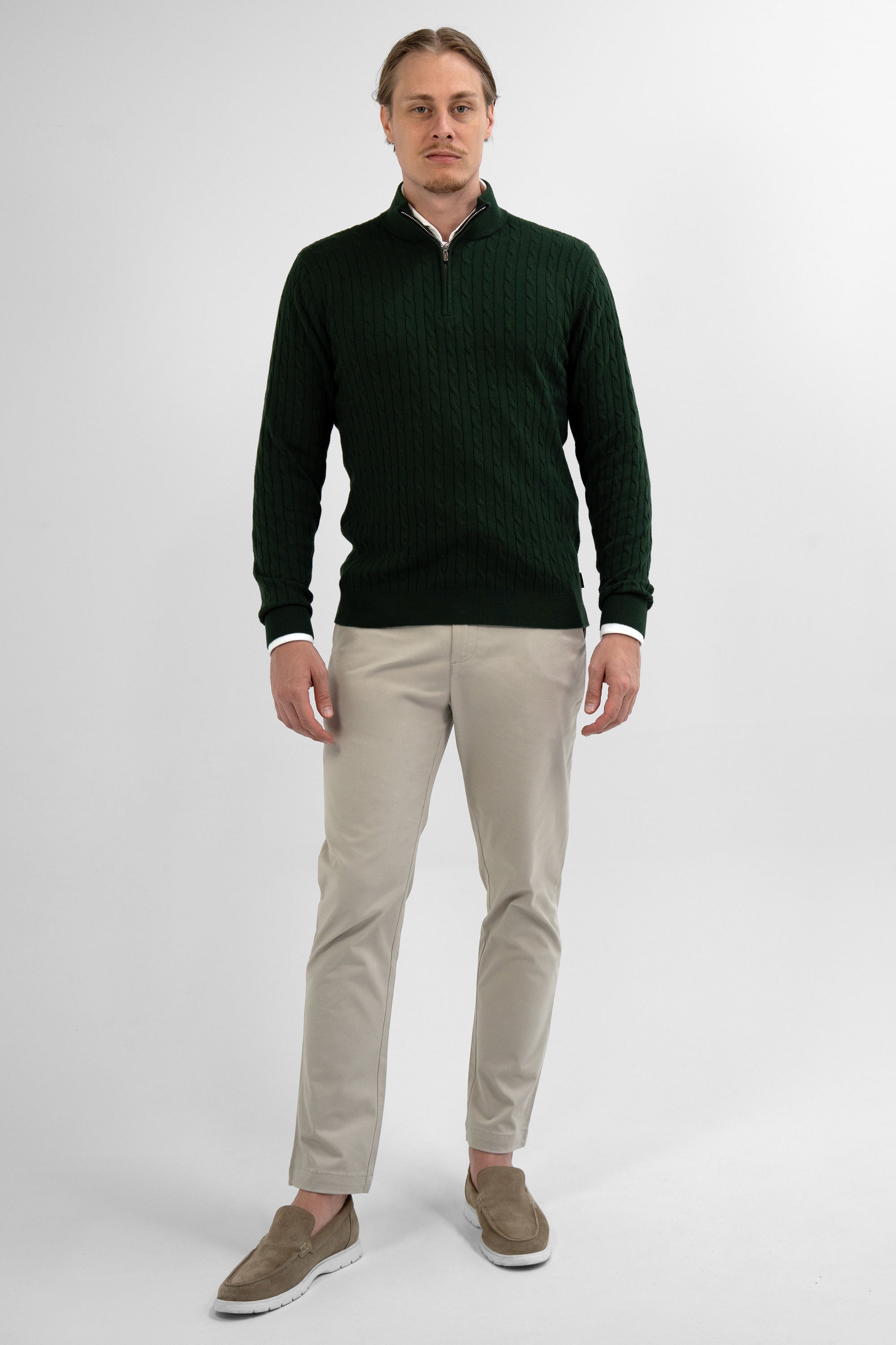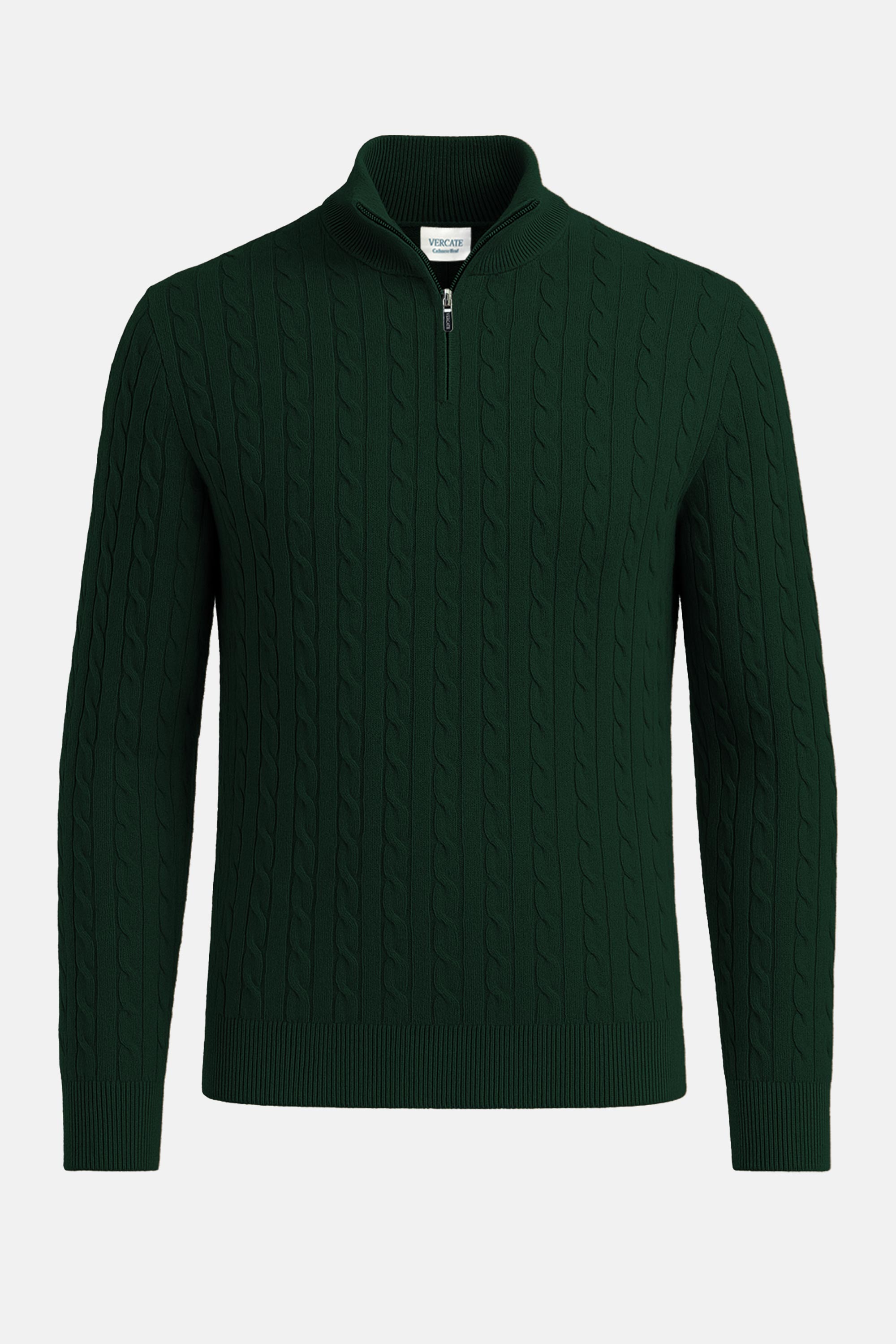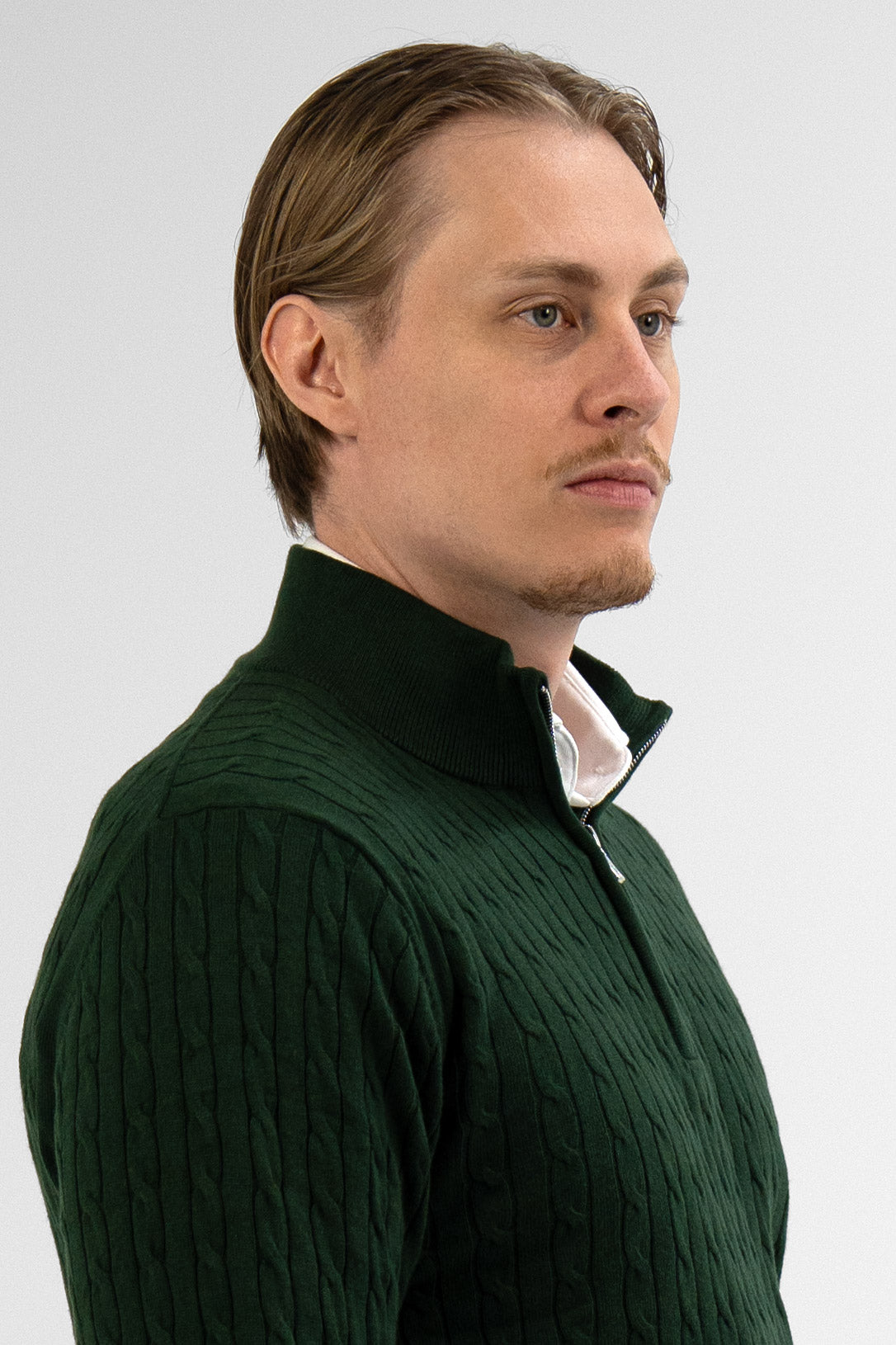 This dark green half-zip sweater is handcrafted from a premium cashmere blend and designed with a timeless cable knit. The fine detailing and soft texture give the sweater a luxurious look and exceptional comfort. Thanks to the modern half-zip, this classic design gains a contemporary touch, making it a stylish piece that will remain beautiful for years to come.