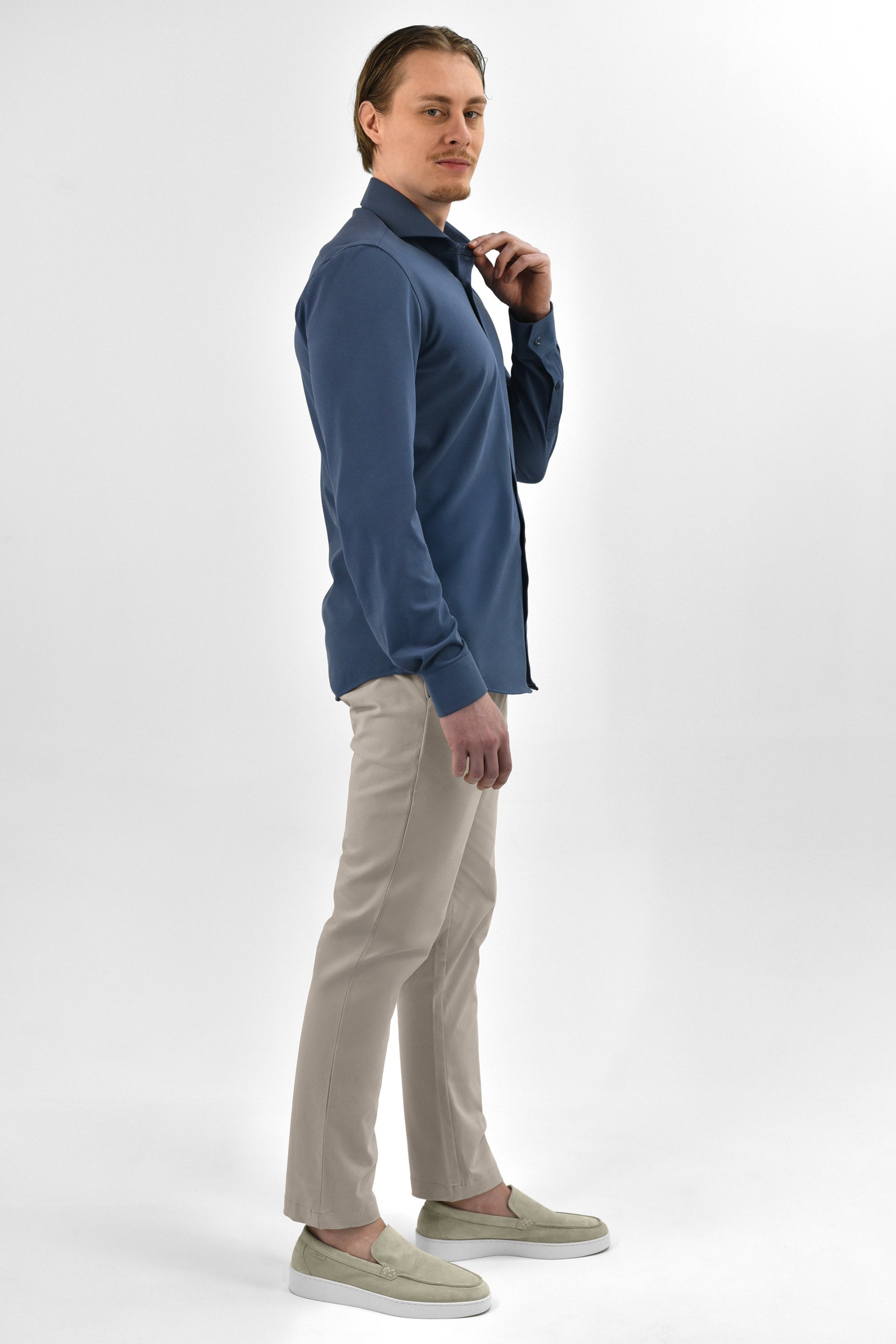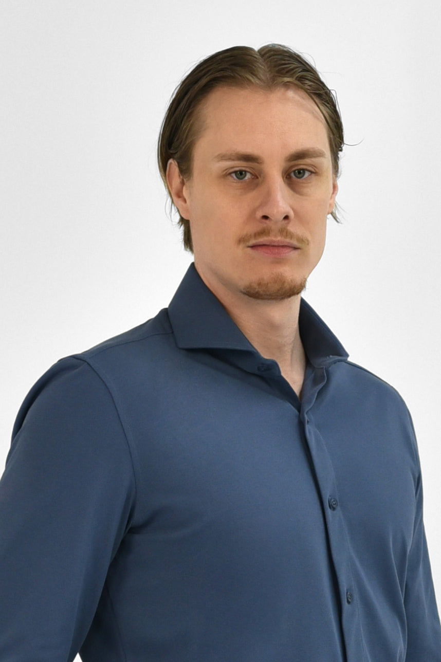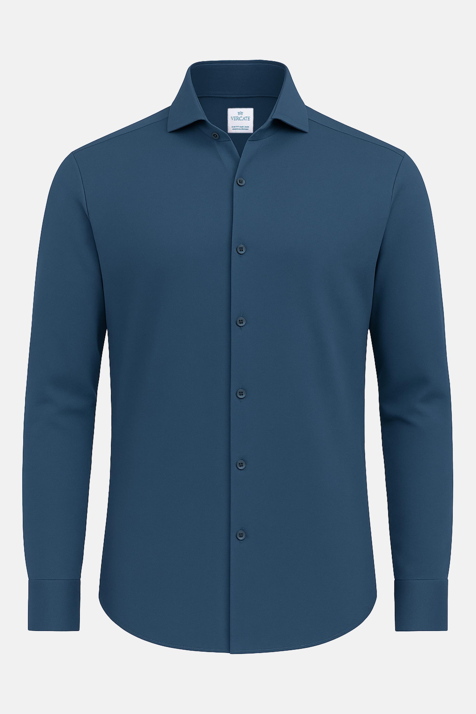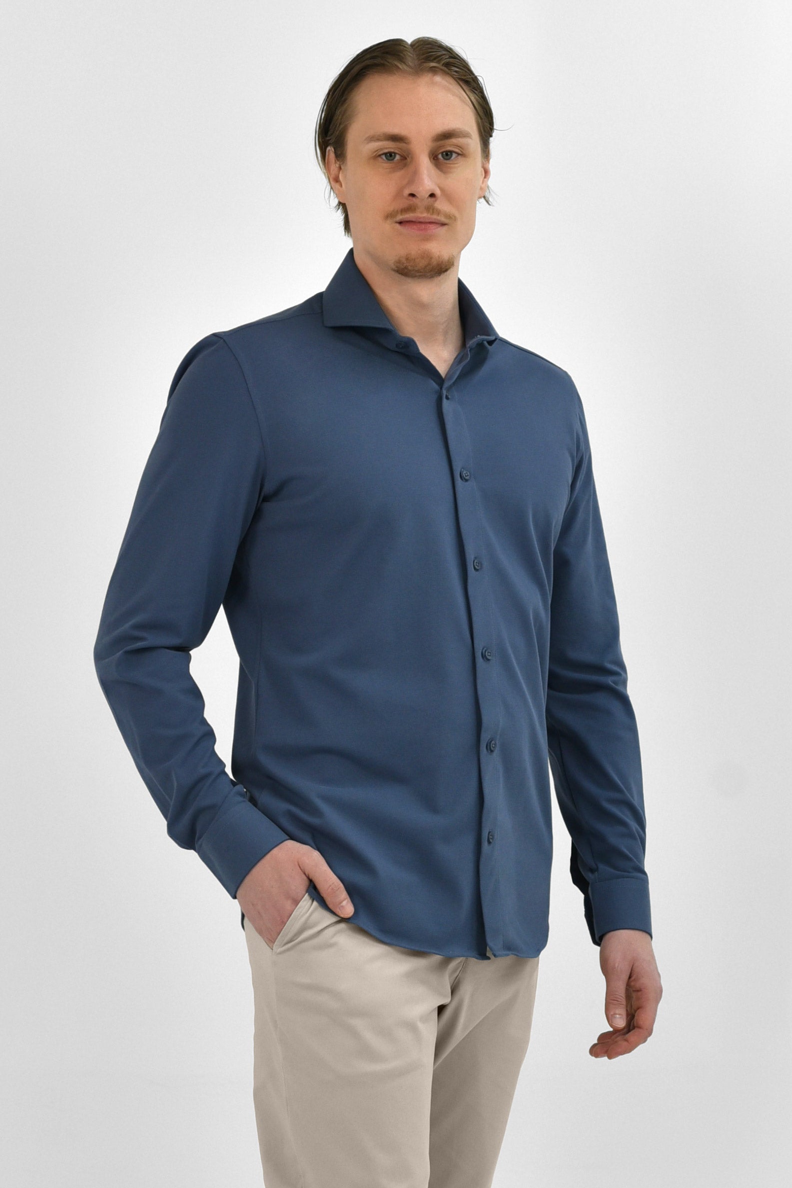 This Non Iron Shirt – Japanese Knitted – Blue combines elegance with unparalleled comfort. Made from high-quality pique cotton, the Japanese Knitted fabric offers a subtle texture, feels soft and supple, and moves effortlessly with you. The cutaway collar and slim fit fit provide a modern look. Thanks to the breathable fabric, the shirt stays fresh all day without the need for ironing. The plain design makes it versatile and suitable for both formal and casual occasions.