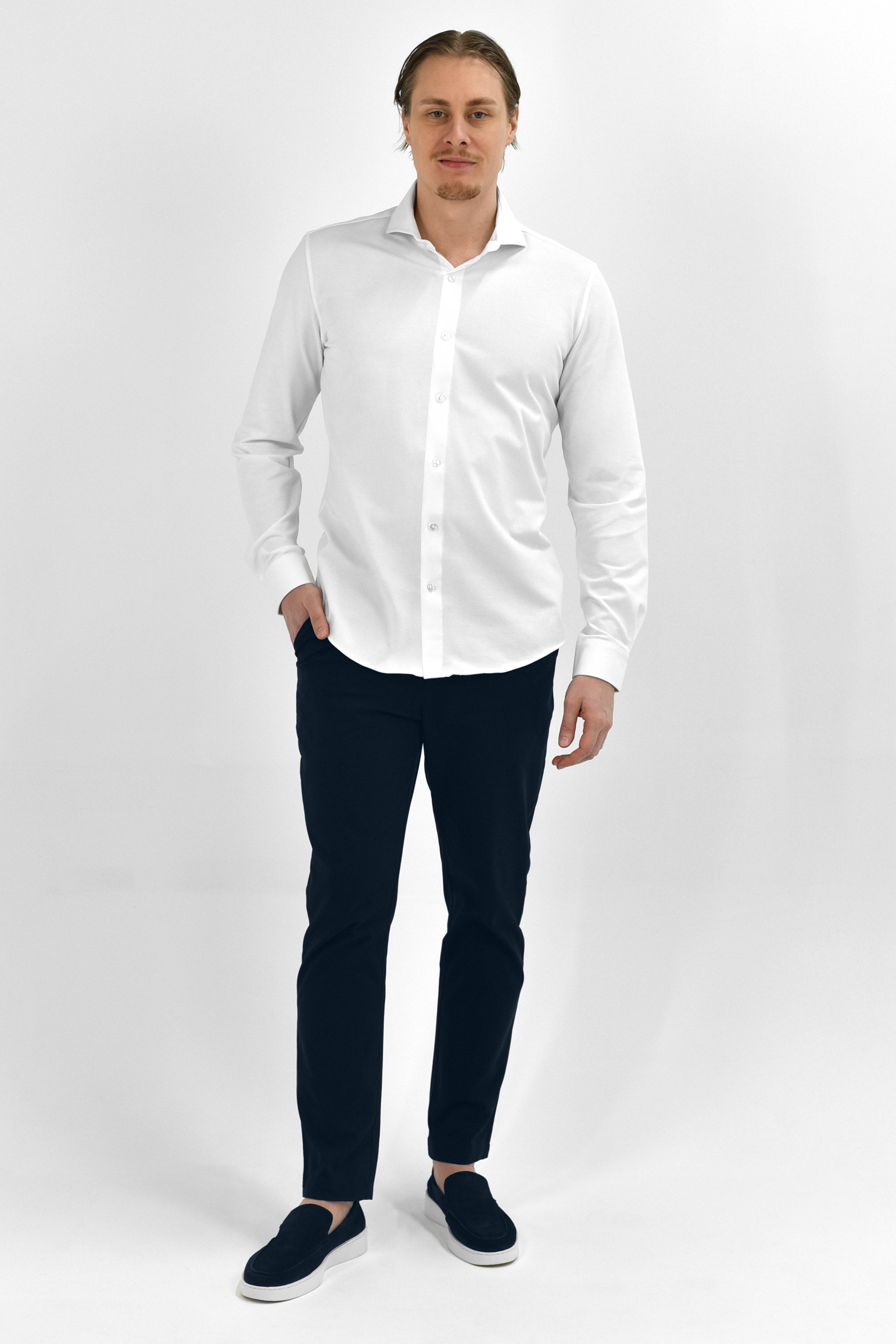 This Non Iron Shirt – Japanese Knitted – White is the perfect blend of luxury and convenience. Made of high-quality pique cotton, it is soft to the touch and offers a subtle texture with optimal breathability. The cutaway collar and slim fit offer a comfortable, elegant fit. A timeless essential that fits perfectly every day.