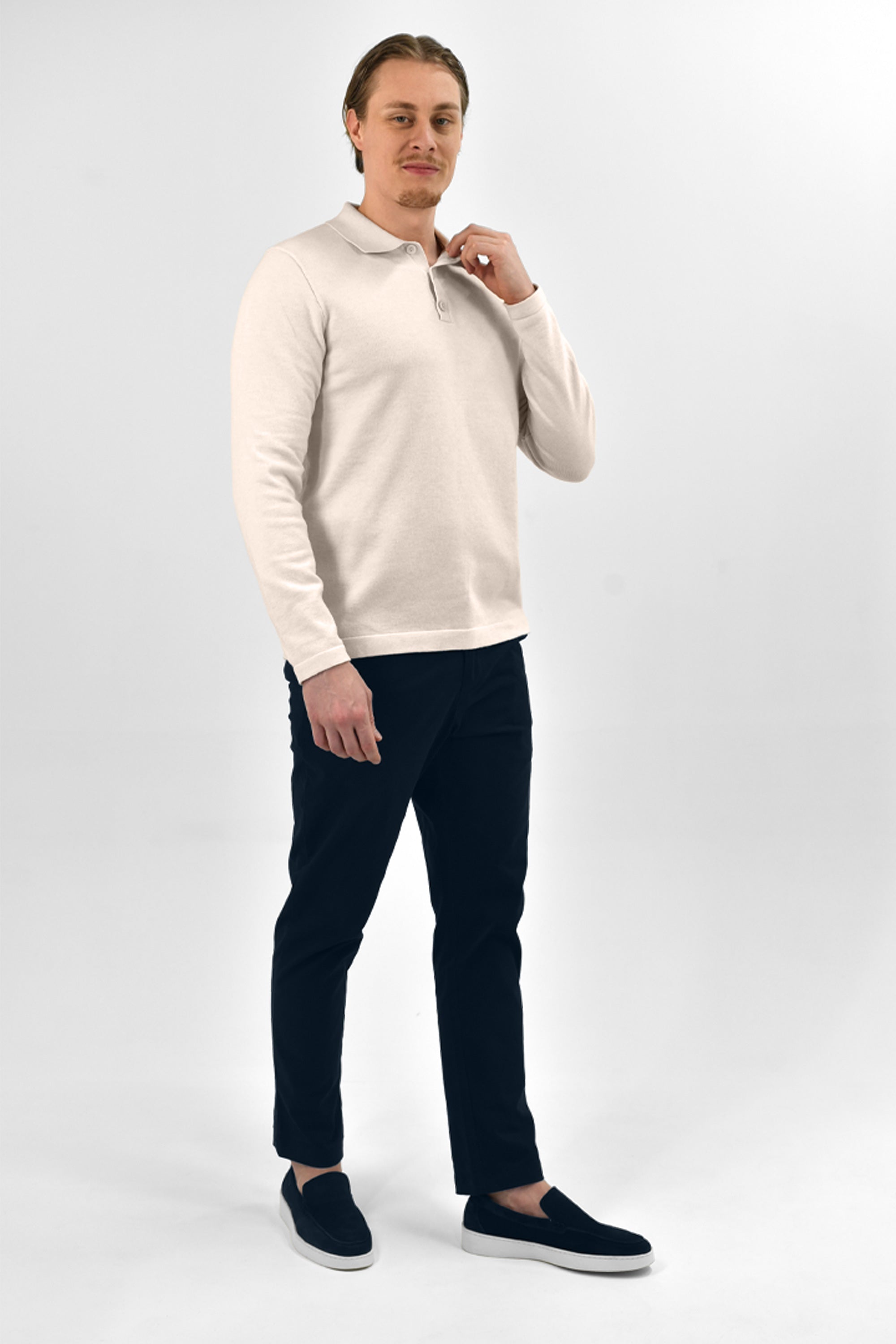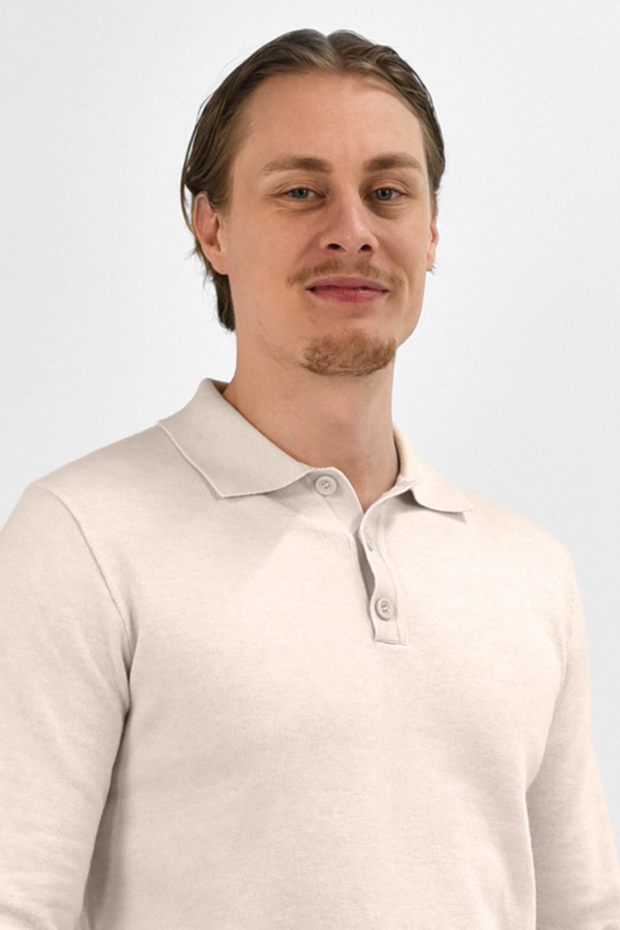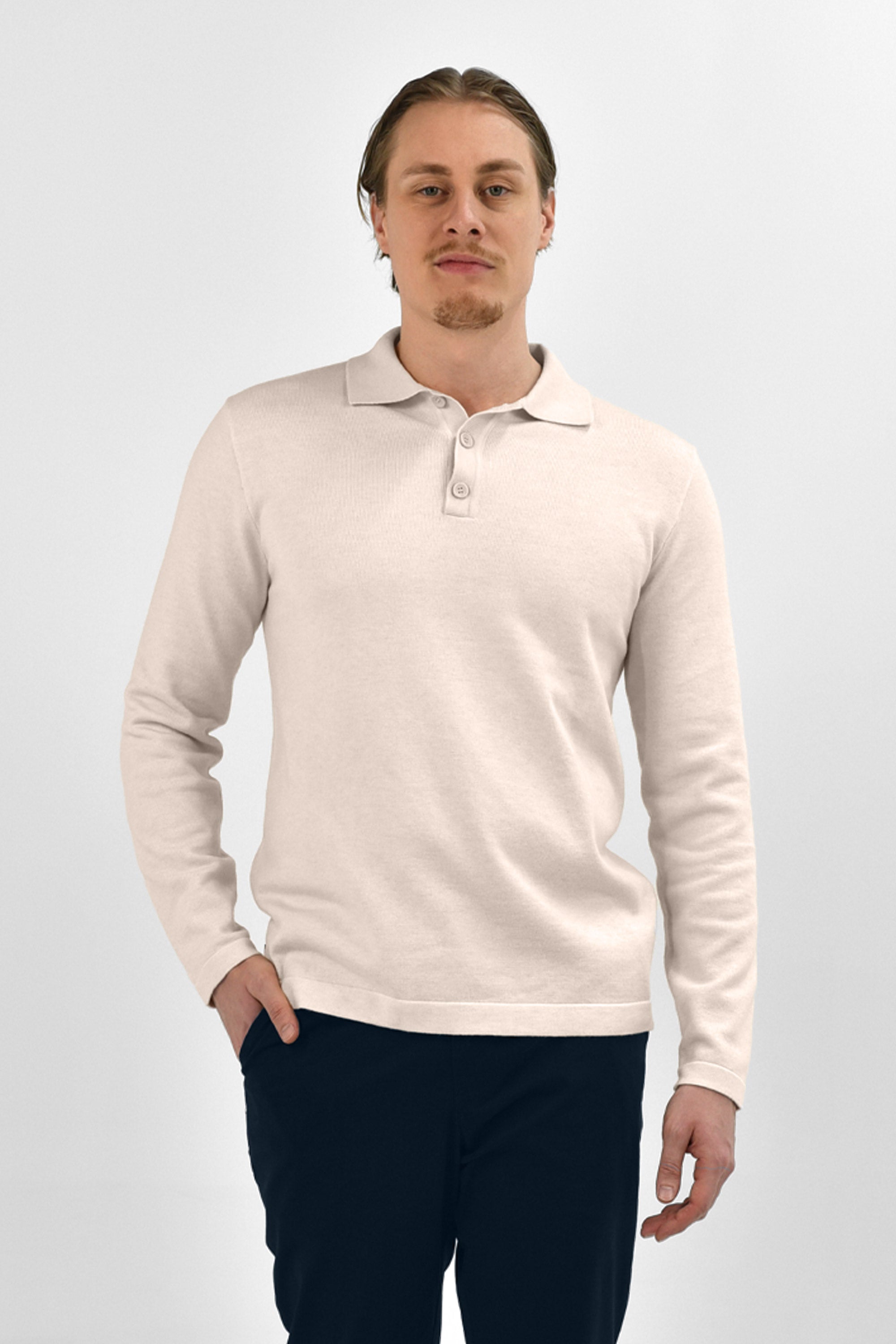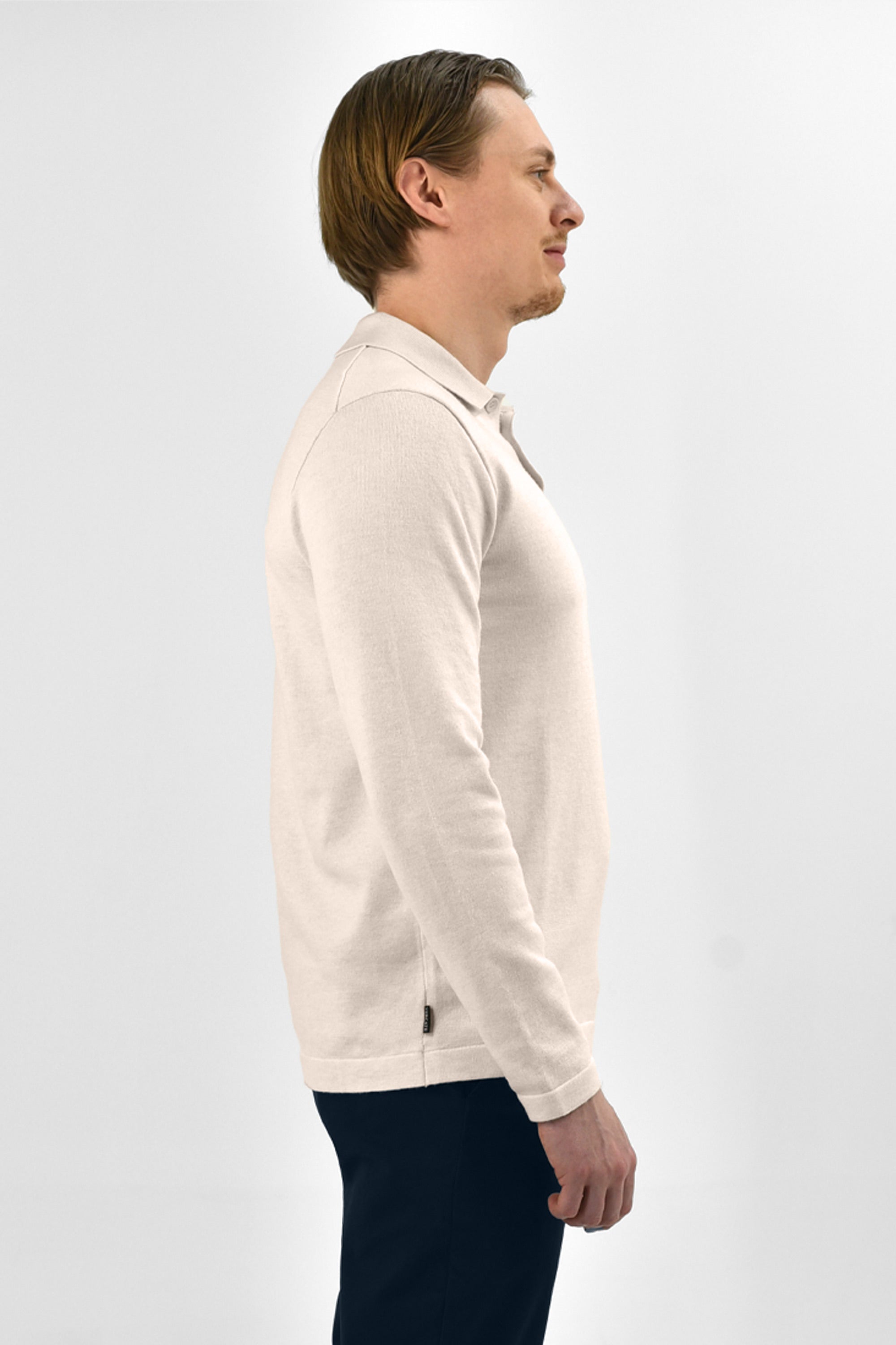 Feel comfortable and stylish in the off-white long-sleeved polo shirt. This Knitted Polo Shirt – Off White is carefully knitted, giving it a soft and luxurious texture. Made from durable materials, this shirt is not only stylish but also a conscious choice.