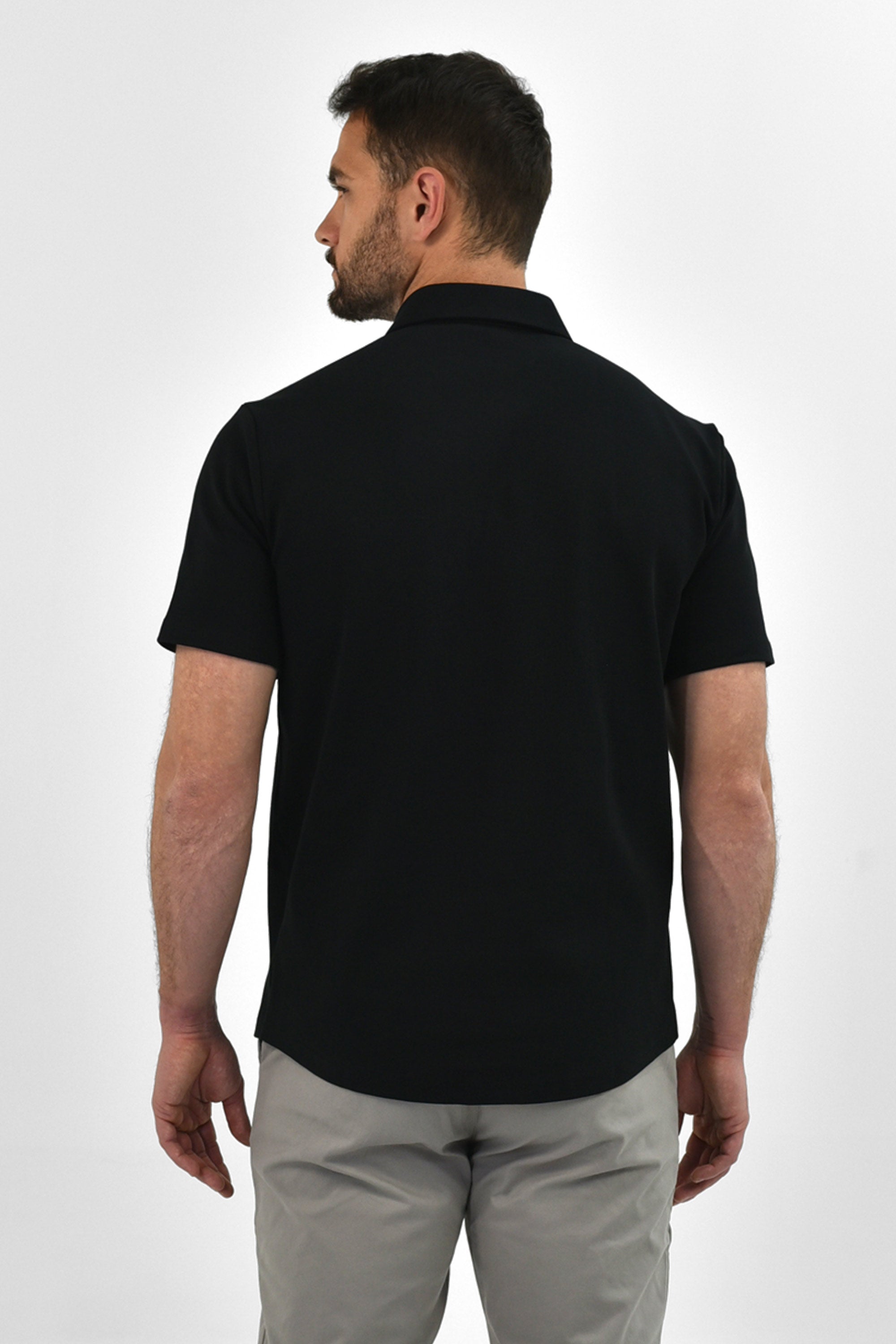 This short-sleeved Non Iron Polo Shirt – Black is perfect for anyone looking for a comfortable and stylish option. It is made of Tencel, an airy and breathable durable material. It feels soft on the skin. Due to the 4-way stretch technology, the polo stretches in 4 directions, making this polo extra comfortable.