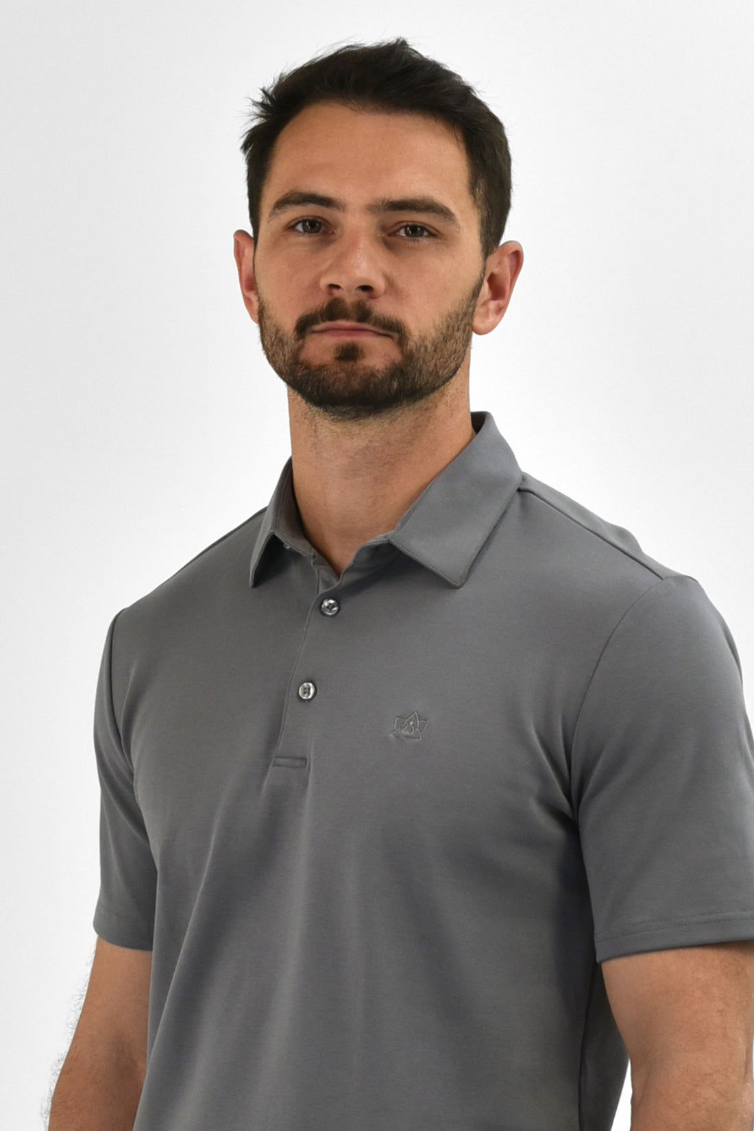 This short-sleeved Non Iron Polo Shirt – Gray is perfect for anyone looking for a comfortable and stylish option. It is made of Tencel, an airy and breathable durable material. It feels soft on the skin. Due to the 4-way stretch technology, the polo stretches in 4 directions, making this polo extra comfortable.