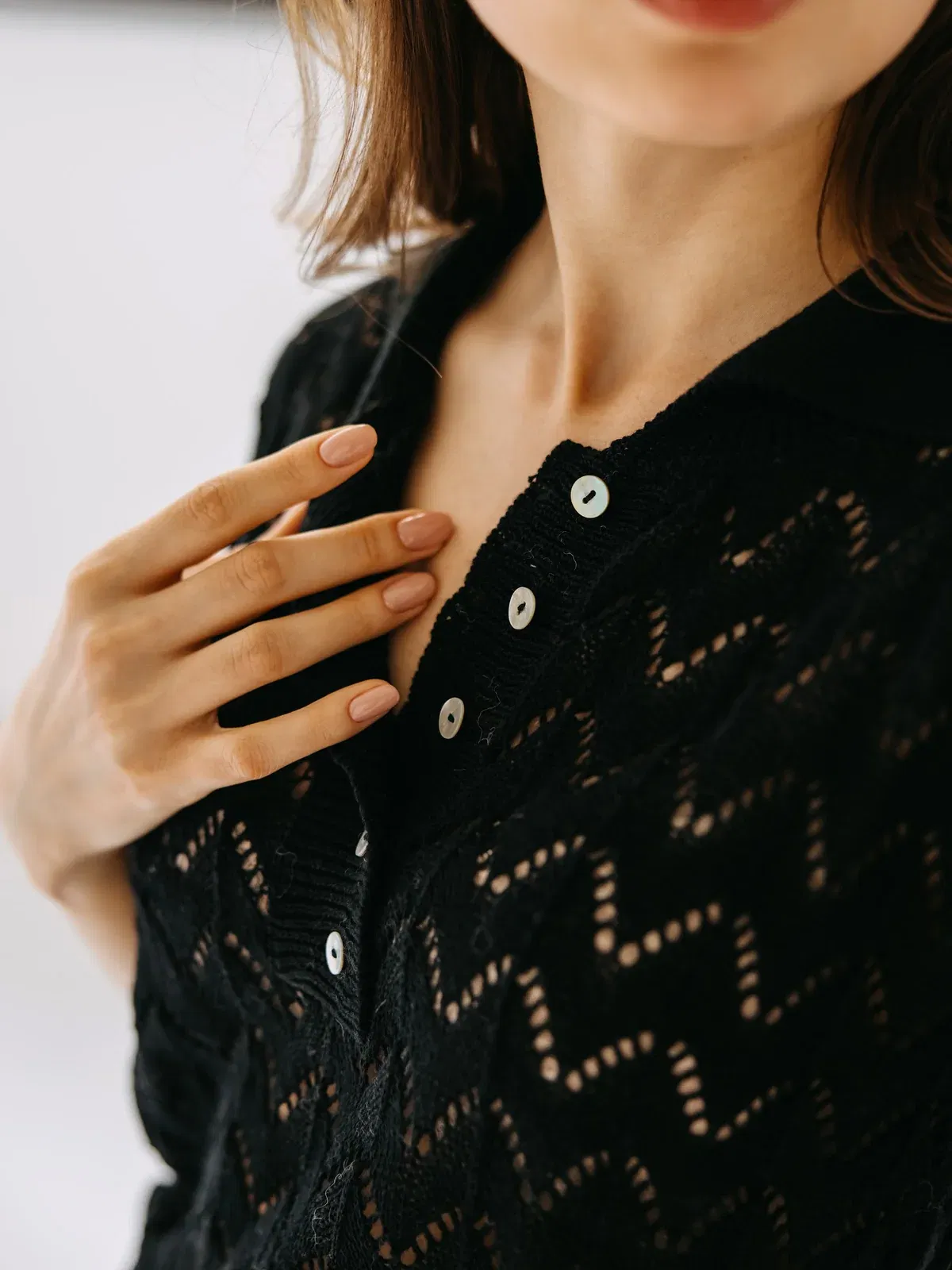 Our black Ima top in 100% baby alpaca embodies the softness and warmth of a discreet, luxurious cocoon. Its fine, silky texture gently caresses the skin, offering exceptional comfort. Natural corozo buttons add a refined touch of elegance, highlighting its timeless style. Perfect for a sophisticated look while remaining cozy.