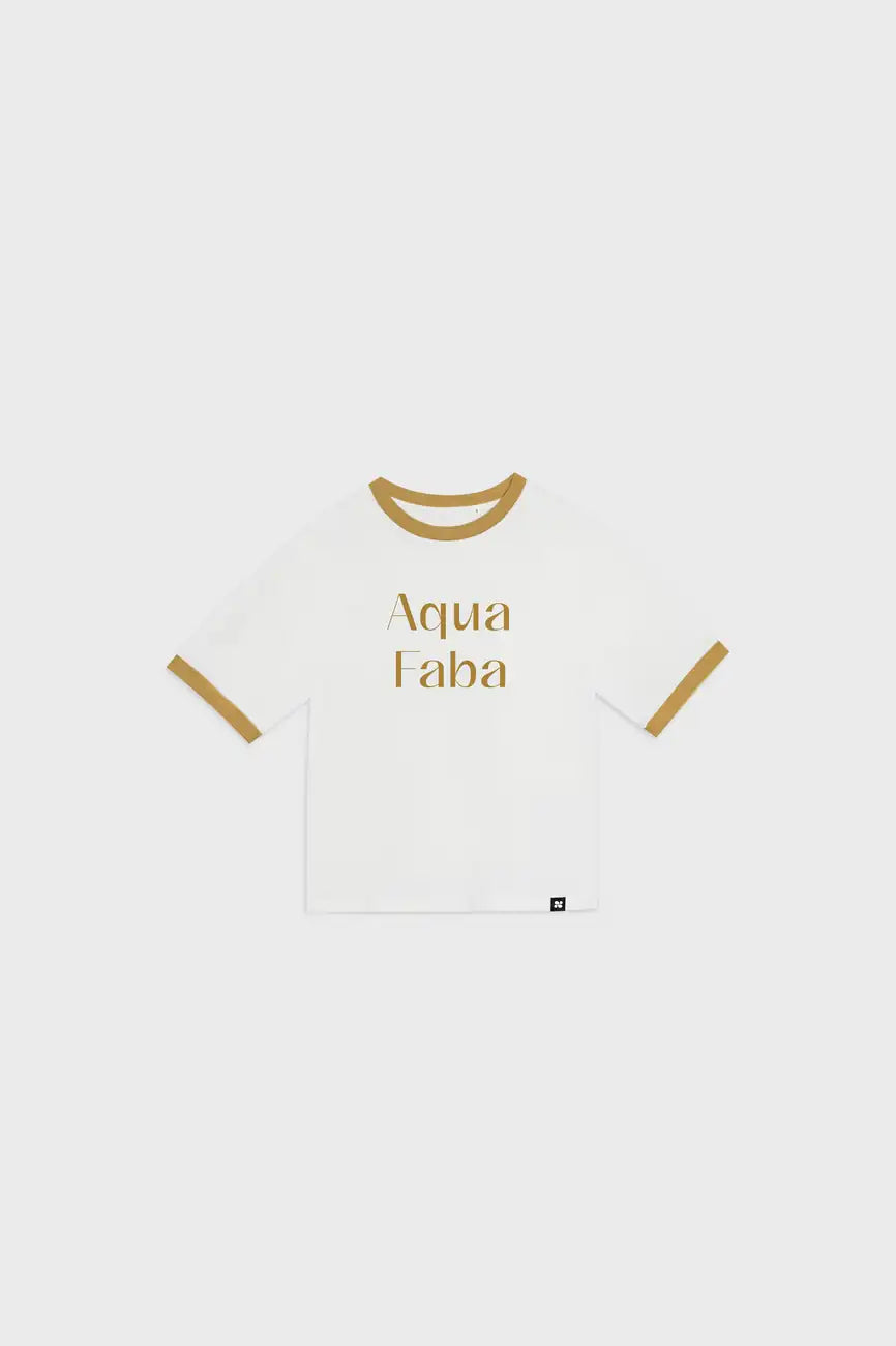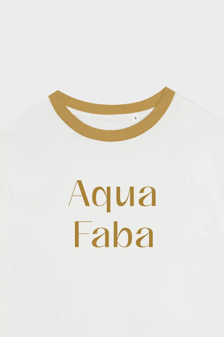 Just like aquafaba adds thickness and richness to everything from cakes to mayo – our Aqua Faba vegan t-shirt brings body (and soul) to your wardrobe. The creamy white base with warm mustard trims and a playful slogan makes this a standout piece in your wardrobe.